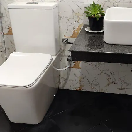 Bathrooms with a bidet, a separate toilet, and a shower, also include bath sheets and slippers.