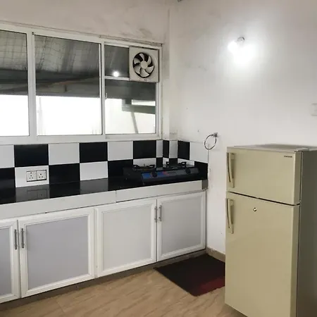 In an equipped kitchen at the Nuwara Eliya accommodation, there are a fridge and kitchenware.